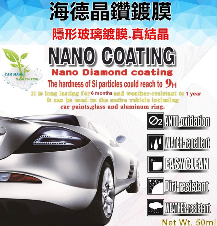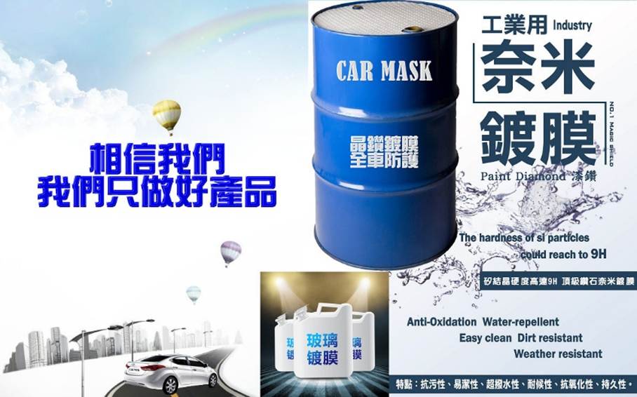 海德CAR MASKS奈米晶鑽鍍膜 日本技術.台灣生產製造MIT 超耐磨.抗油污.易清潔.超潑水.抗髒污.提升表面滑度 也能使用在廚房衛浴讓家庭主婦的您打掃起來更輕鬆
